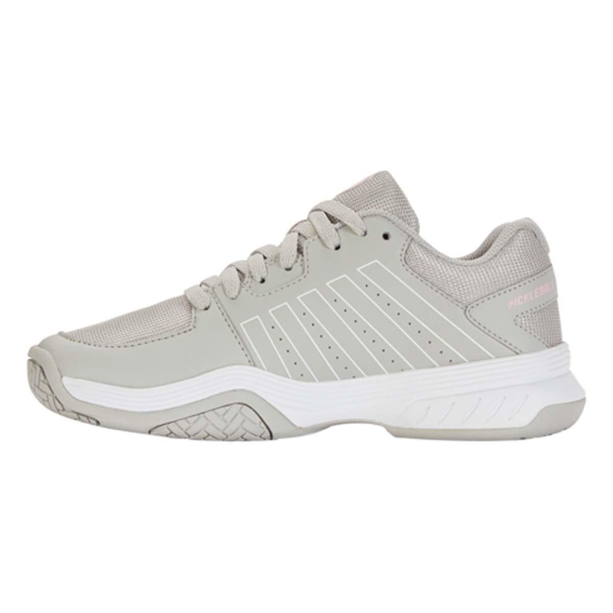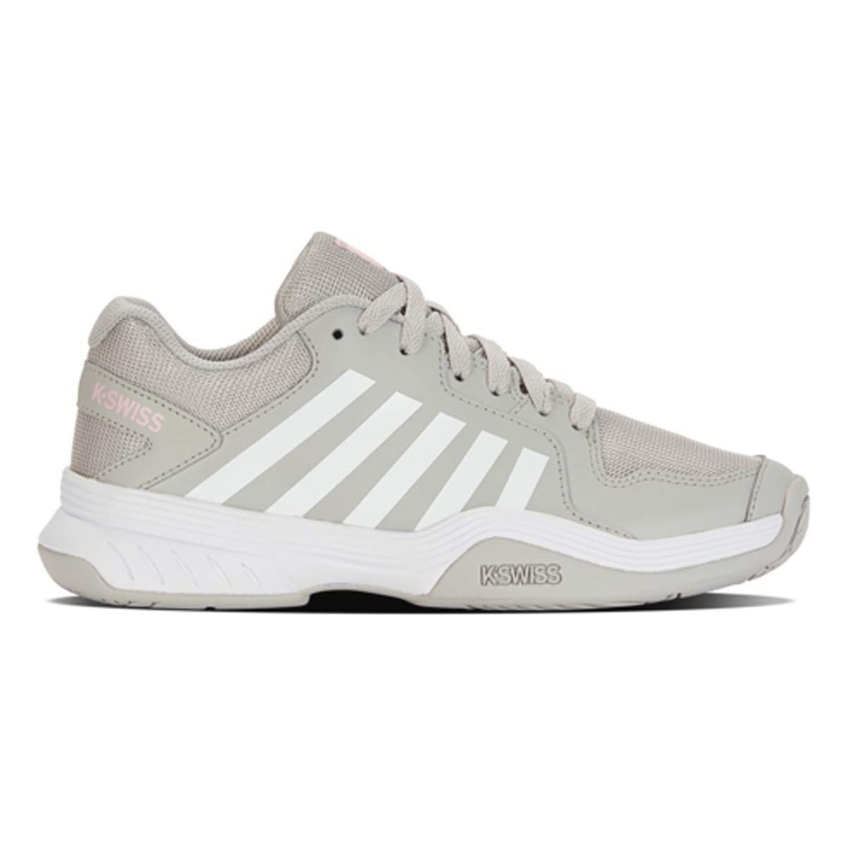 Introducing the Women's K-Swiss Express Court Shoes! Perfect for the active woman who wants to look and feel her best, these lightweight shoes will give you the support and flexibility you need to take on any court challenge. The leather upper provides comfort, durability and style, while the non-marking rubber outsole ensures a solid grip on any surface. The K-Swiss Express Court Shoes also feature an innovative cushioning system that helps absorb shock and reduce fatigue. Whether you're playing a game of tennis or just hitting the court for a quick pick-up game, these shoes provide the perfect combination of performance and style. Step out in confidence on the court with the Women's K-Swiss Express Court Shoes today!