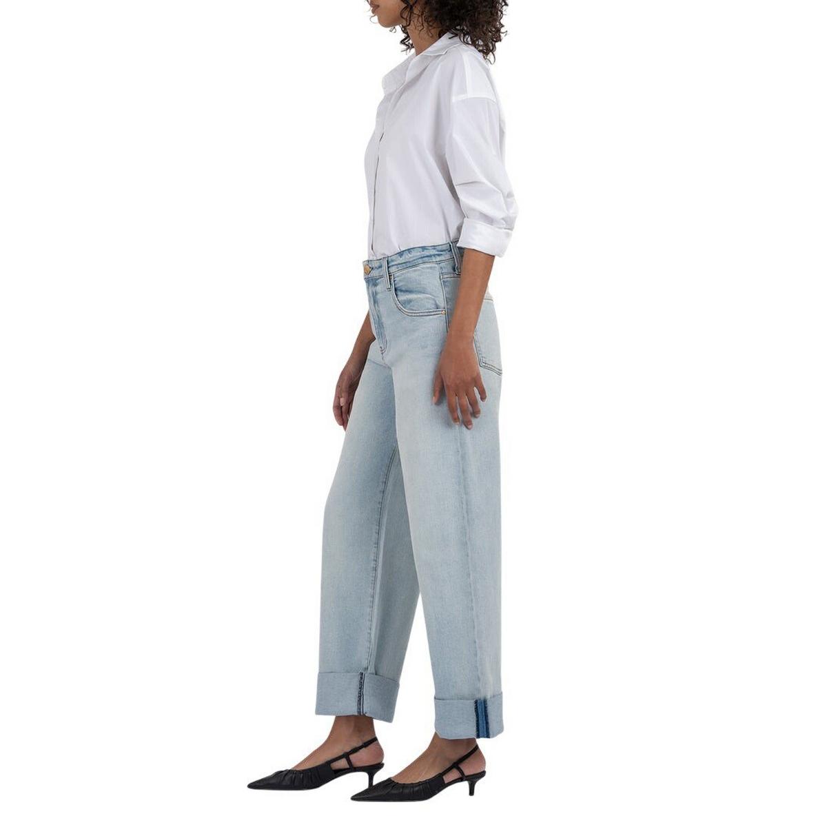 Women's KUT from the Kloth Gwen Roll Up Relaxed Fit Wide Leg Jeans