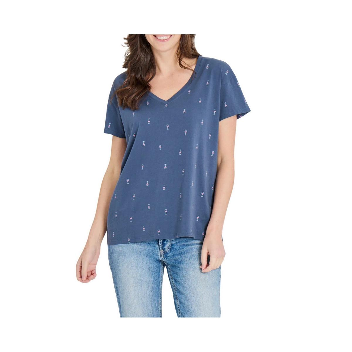 Old Price:Women's Life is Good Wine Glass Pattern V-Neck T-Shirt