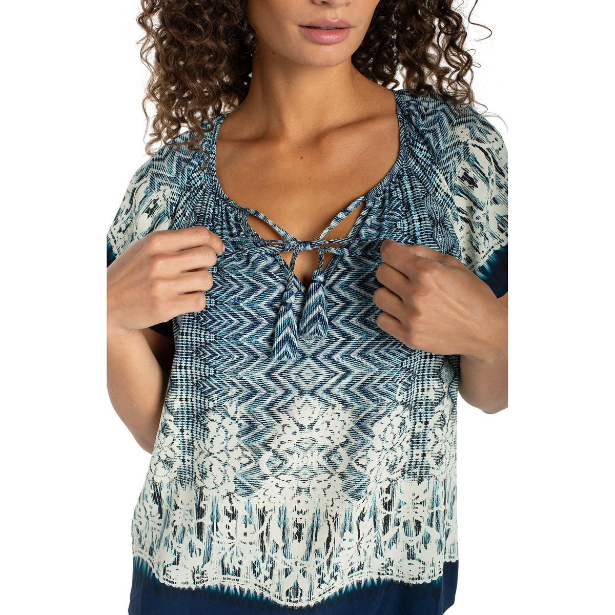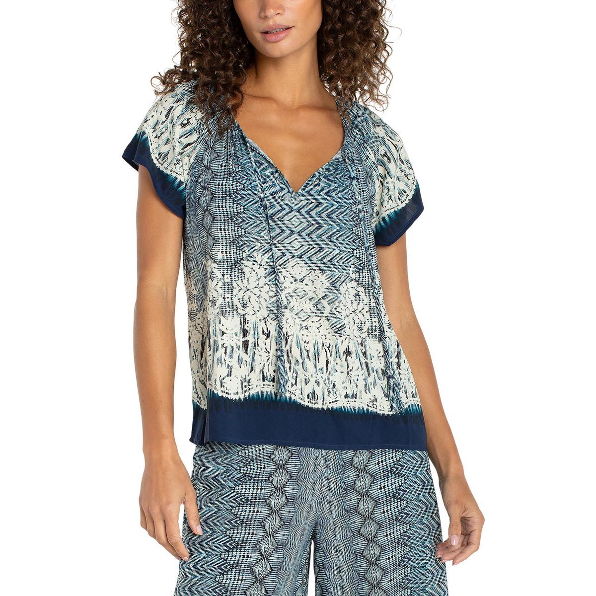 Effortlessly stylish, this short sleeve woven top features a front tie detail and our signature Nomad Ikat print. Lightweight and easy to wear, it pairs perfectly with our palazzo pants for a coordinated, chic look.