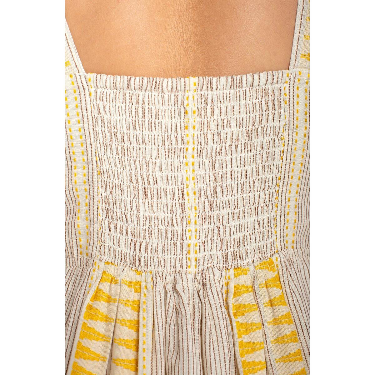 Effortlessly chic, this sleeveless midi dress features a flattering silhouette and timeless cream-and-brown stripes. Lightweight and versatile, it’s perfect for everyday wear or dressing up with your favorite accessories.