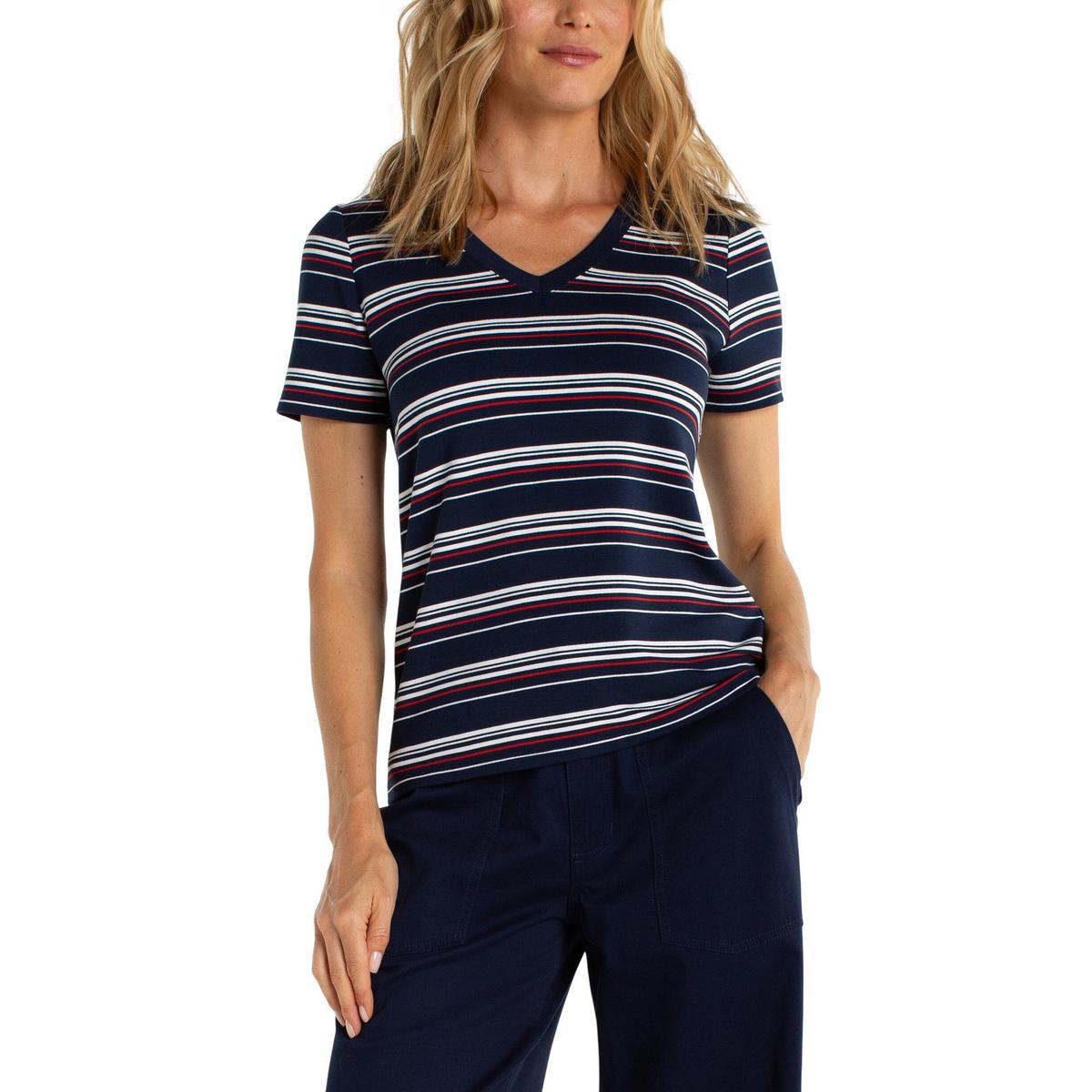 Women's Liverpool Los Angeles Striped Knit V-Neck T-Shirt
