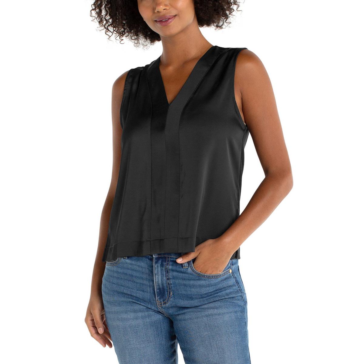 Women's Liverpool Los Angeles Woven-To-Knit Sleeveless V-Neck Blouse