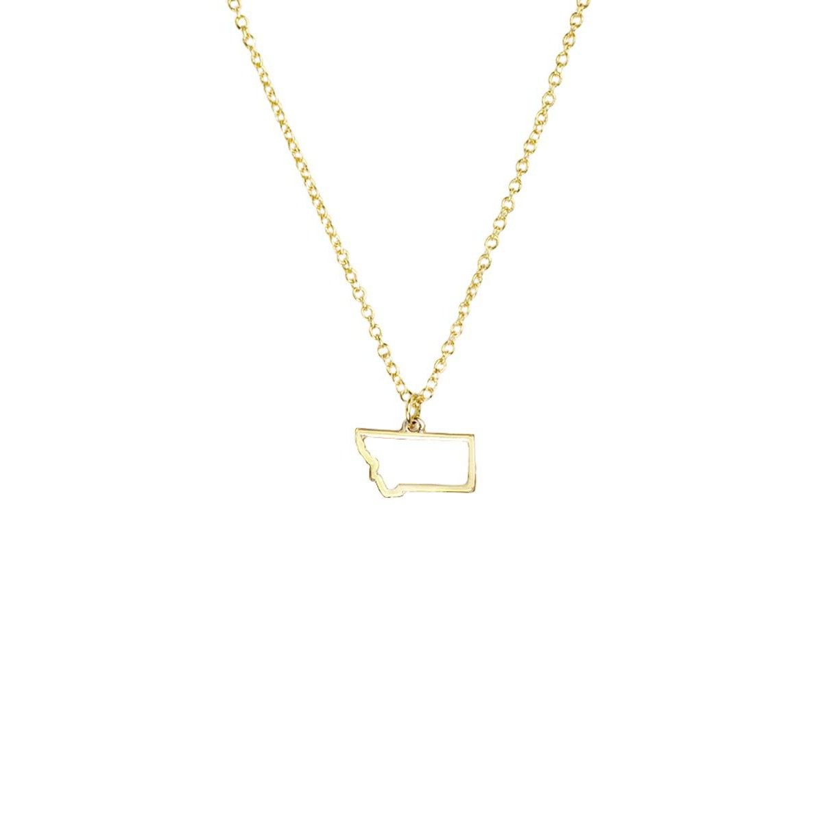 Big sky Montana. Wear your pride with this 14k gold dipped Montana state necklace. Easily adjustable from 16-18" in length and packaged on a stylish and colorful card with the state silhouette. Now you can enjoy the big sky in style!