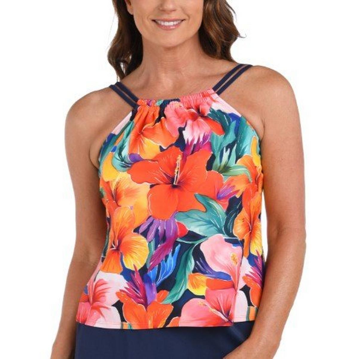 We're wild about this tankini. The animal print up top fades into solid black for figure-defining style. A high-neck design showcases your shoulders, drawing the eye upward to create a balancing effect. Part of the Maxine Movement collection, this suit delivers a higher level of chlorine resistance, shape retention and comfortable compression for a sleek silhouette.