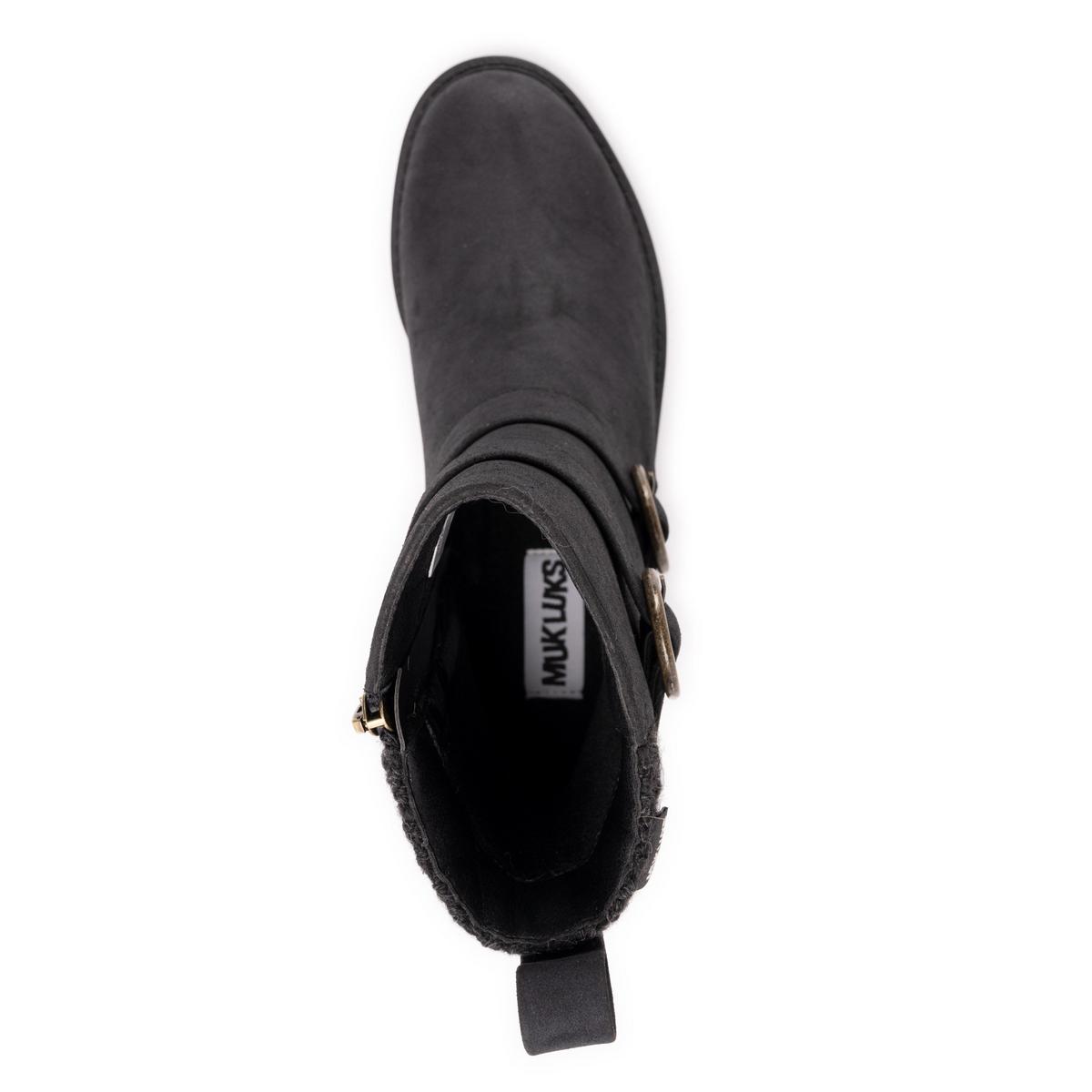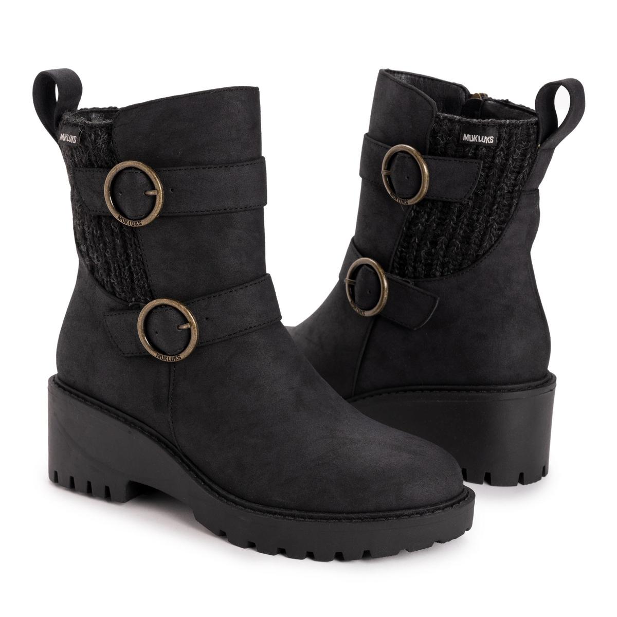 The chunky lug sole of the MUK LUKS Women's Faith Boot puts a 90s spin on this side-zip modern boot. Not only will you appreciate the neutral sweater detail and buckles, but your feet will feel cozy, thanks to the signature Muk Luxe lining.