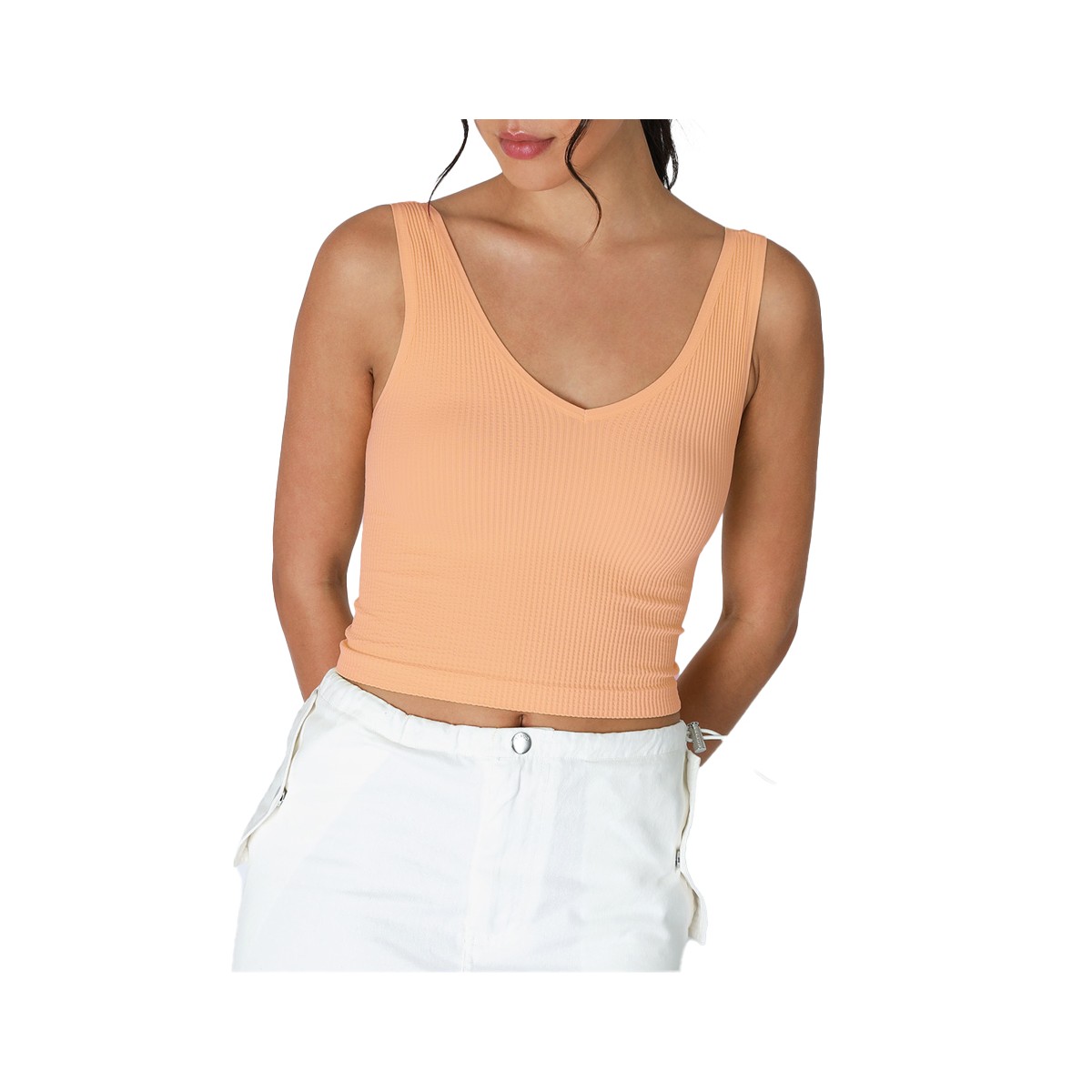 The Women's NikiBiki V Neck Ribbed Crop Top provides women of all sizes a snug, stylish fit. The NikiBiki V-Neck Ribbed Crop Top offers a seamless, stretchy construction with a v-neck front that looks great on its own or as a first layer. NikiBiki tanks are a must-have in your closet—you can score one in every color and style! Start styling your Women's NikiBiki V Neck Ribbed Crop Top today!