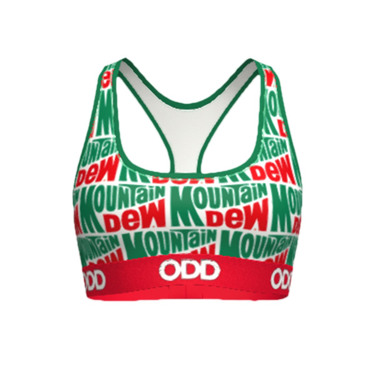 Fun Mountain Dew Heritage licensed women's sports bra; Be you, be Odd.