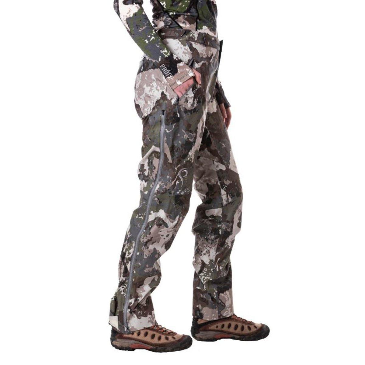 The Dionla Rain Pants feature an extra long leg zipper that extends to your hip for ease of donning and doffing in the field. Additionally this two-way zipper can be unzipped from the top for extra ventilation. The outer elastic waistband creates the perfect fit, makes these pants easy to don, and easier to layer. Articulated knees further enhance full range of movement without bunching. Taped seams and waterproof zippers ensure complete waterproofing with no leakage even in torrential downpours. These pants are a must have for any hunt where wet weather is a possibility.