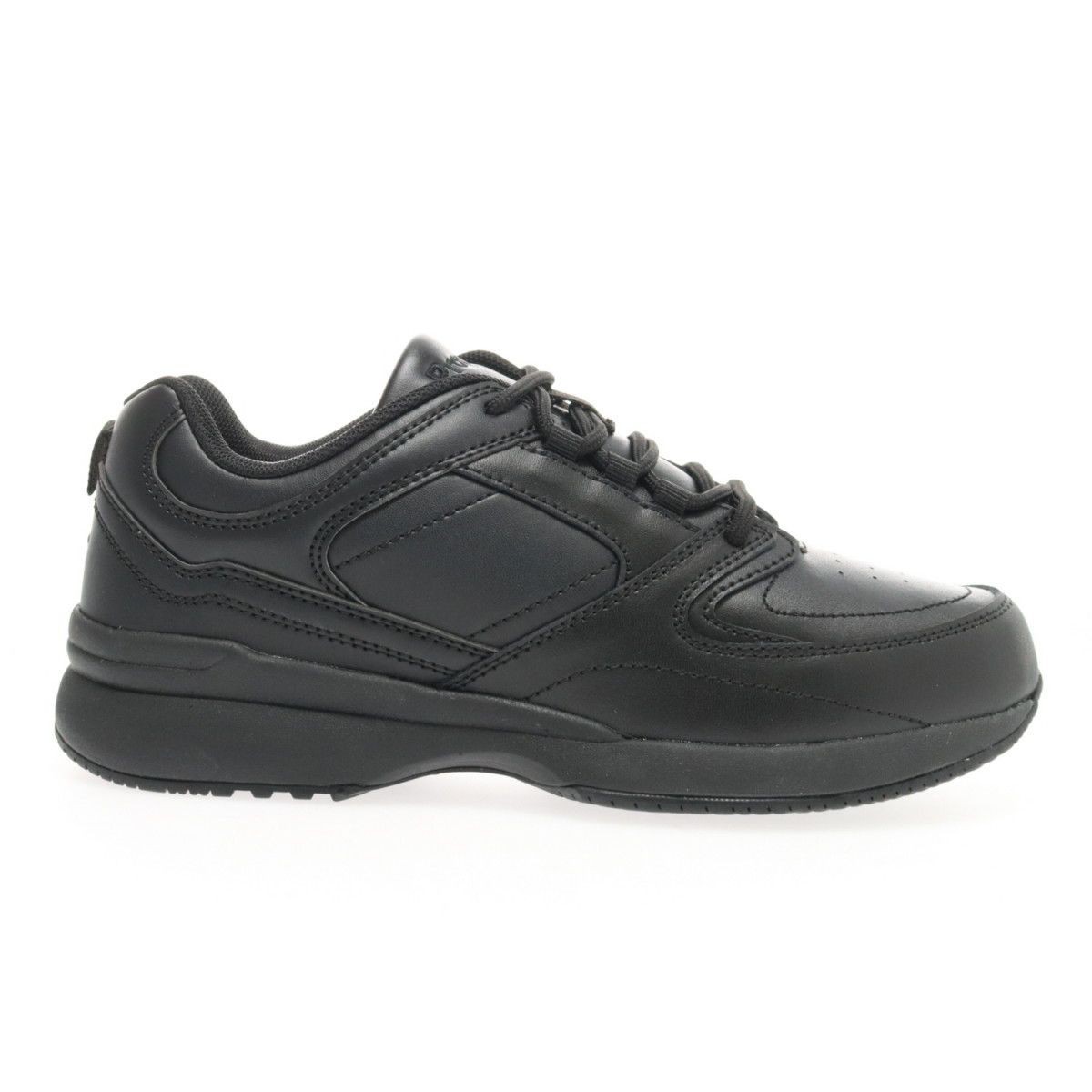 Leather upper with brushed-nylon lining and firm heel counter for added support. Breathable open cell PU with added heel cushion moves moisture from foot for a cooler, healthier footbed. Cushioned EVA midsole with herring-bone rubber outsole.