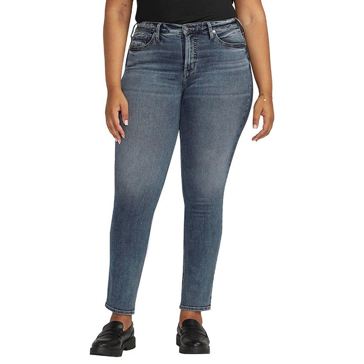 Women's Silver Jeans Co. Plus Size Plus Size Most Wanted Faded Ankle Slim Fit Straight Ankle Jeans