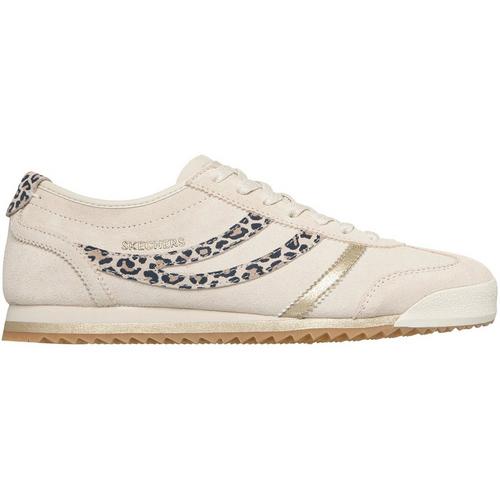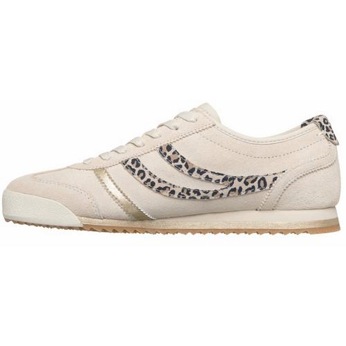 Mesh upper with leopard trim and fixed stretch laces