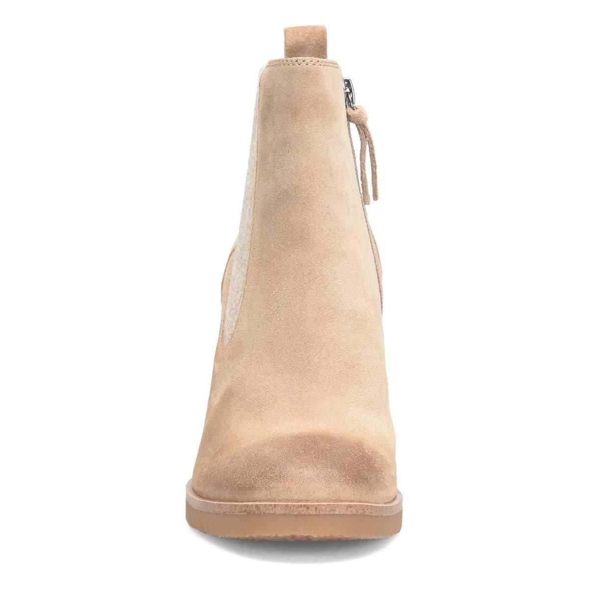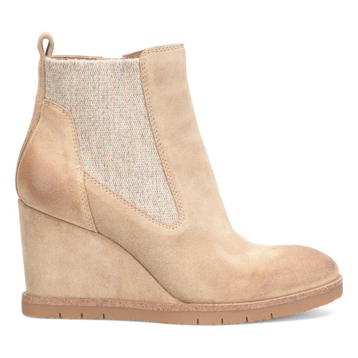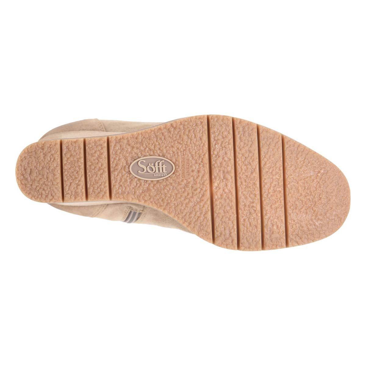Sofft's stunning over-the-ankle boot is luxe, charming, and impossible to resist. waterproof leather and suedes, elastic goring for better fit, inside zipper, wedge heel, flexible rubber outsole 3.25 inch heel