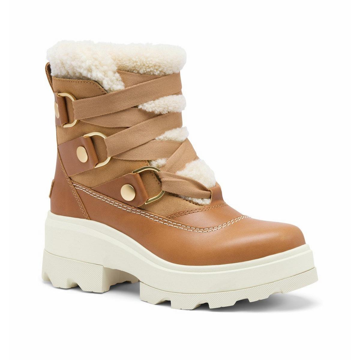 The Sorel Joan FRWD Cozy boot elevates winter style with added warmth and comfort, making it a perfect choice for chilly days. Crafted with a waterproof full-grain leather upper, this boot provides reliable protection against snow, while a plush shearling keep your feet extra cozy. A removable EVA footbed cushions each step for all-day comfort, and a molded rubber outsole offers excellent traction on slippery surfaces. With its sleek silhouette and secure lace-up, the Women's Sorel JOan FRWD Cozy Waterproof winter boots are a go-to for cold weather adventures.