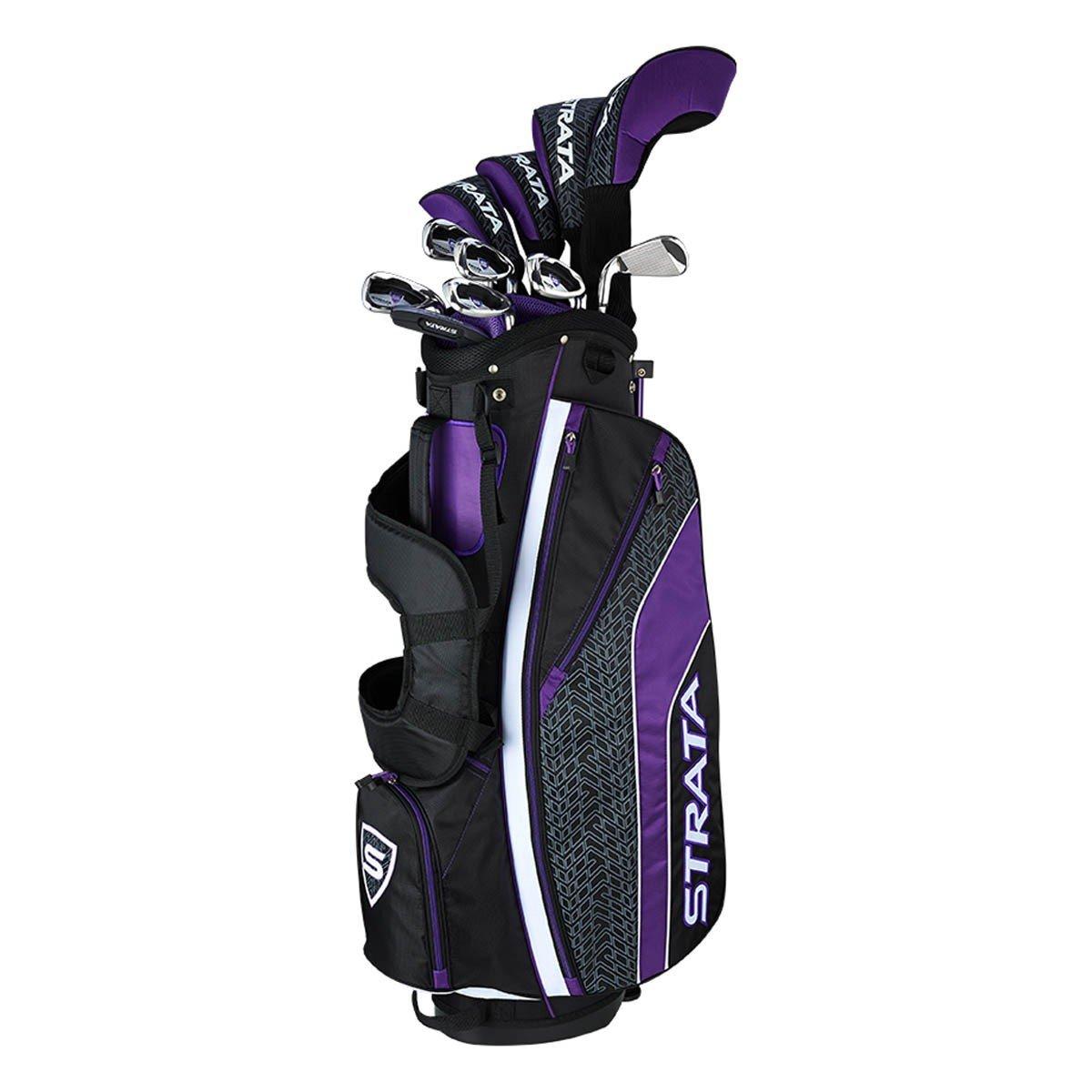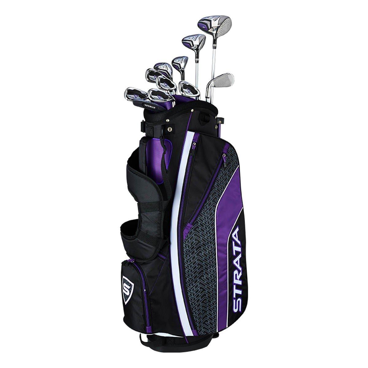 The Strata Ultimate 16-Piece Women's Set is packed with modern golf technology to give you the ultimate in distance, performance, and forgiveness. Featuring a full titanium driver, you'll enjoy a larger sweet spot and more forgiveness off the tee box, while the precise fill-facing design of the putter provides better accuracy and distance control. The irons within the Strata Ultimate 16 Piece Women's Set feature high-flight technology to deliver distance, forgiveness, and control. To round out your set, the Strata Ultimate 16-Piece Women's Set includes a golf bag with multiple pockets and comfortable carrying straps.