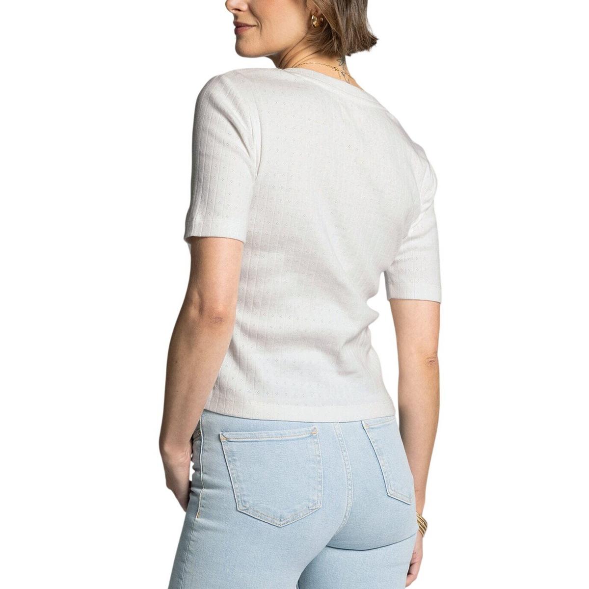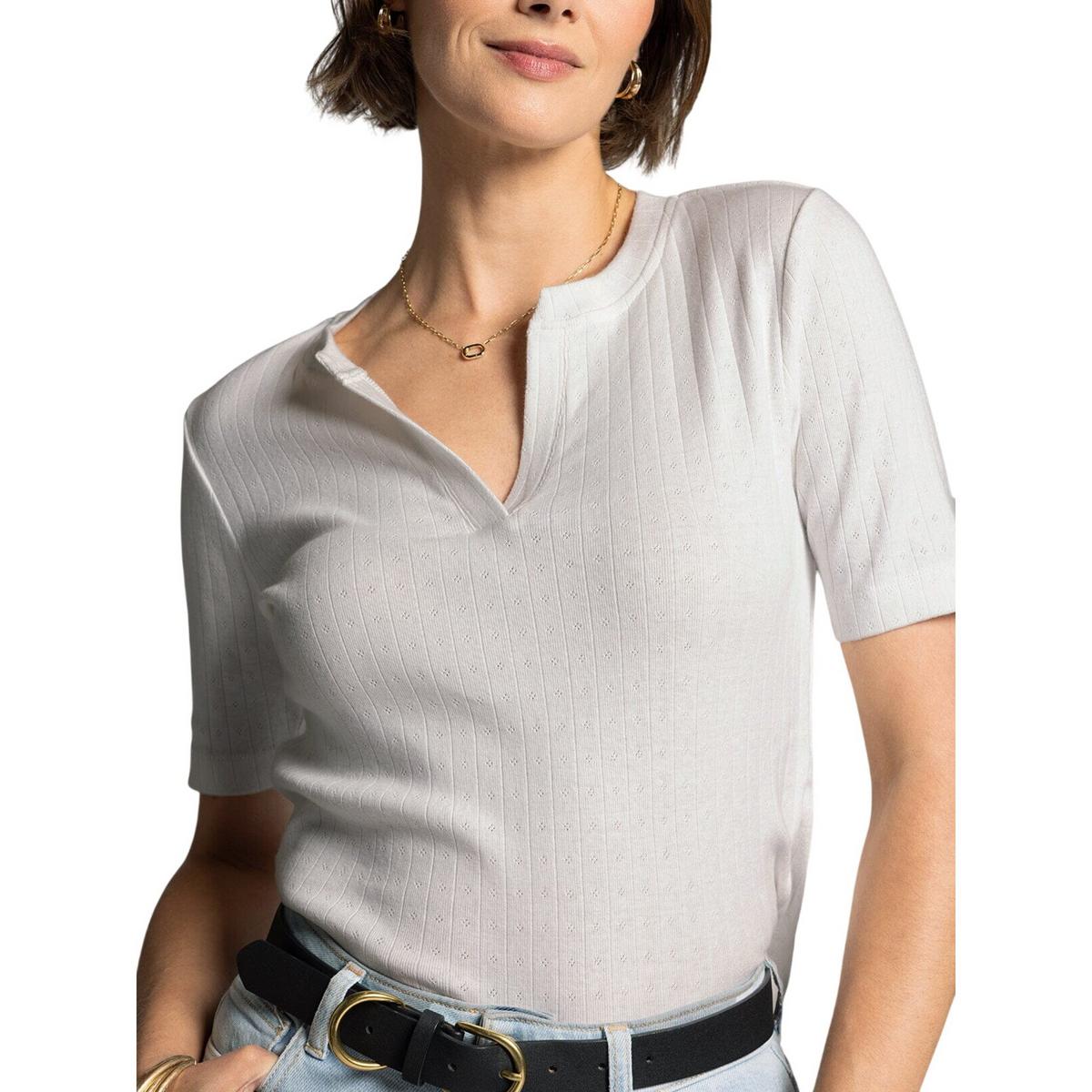 {"reviews":[],"offset":0,"limit":10,"total":0}"Full Description:\nDelicate and darling, this twist on a classic tee is featuring a soft pointelle fabric, v neckline and relaxed fit.\n\nSpecifications:\n\u003cul>\n\u003cli>92% cotton, 8% spandex\u003c/li>\n\u003cli>Measurements for a size small:\u003c/li>\n\u003cli>Length: 23"\u003c/li>\n\u003cli>Chest: 15"\u003c/li>\n\u003cli>Sweep: 15"\u003c/li>\n\u003cli>Sleeve length: 9 3/4"\u003c/li>\n\u003c/ul>\n"