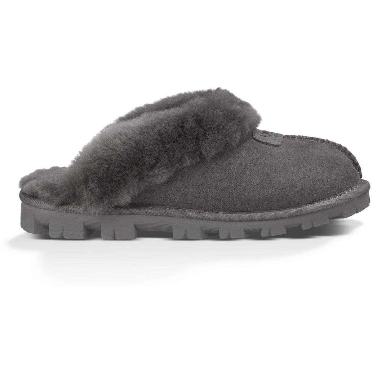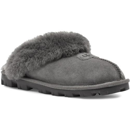 The Women's UGG Coquette Slippers are super cozy and comfortable to slip into when the weather gets chilly. The UGG Coquette Slippers feature sheepskin lining for warmth and a furry collar for style. The molded EVA outsole provides traction and durability so you can wear the UGG Coquette Slippers both indoors and outdoors. To keep your feet dry, the UGG Coquette Slippers wick moisture and feature an open-back design for breathability. For style and warmth around the house or out and about, slip on the UGG Coquette Women's Slippers.