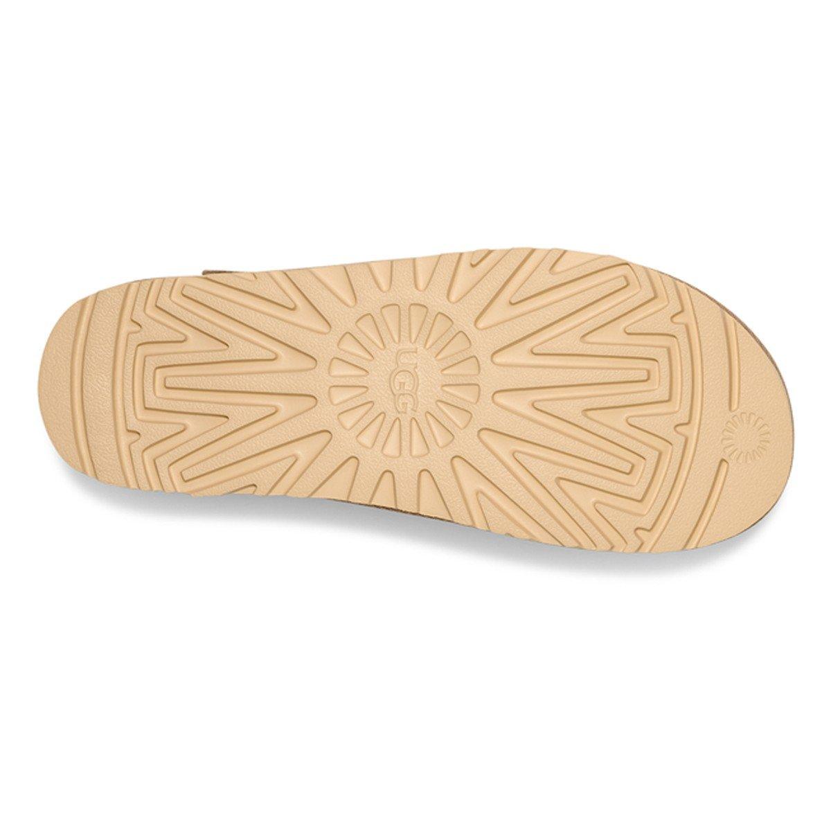The Women’s UGG Goldenstar Flatform Sandals will be your new go-to sandals for the summer. These sandals are the perfect blend of fashion and sustainability, made with recycled polyester materials and a contoured footbed. With an adjustable ankle and vamp strap and hook-and-loop closure, these sandals are accessible to everyone. Completed with a suede upper to give the UGG feel and keep you comfortable all summer long!