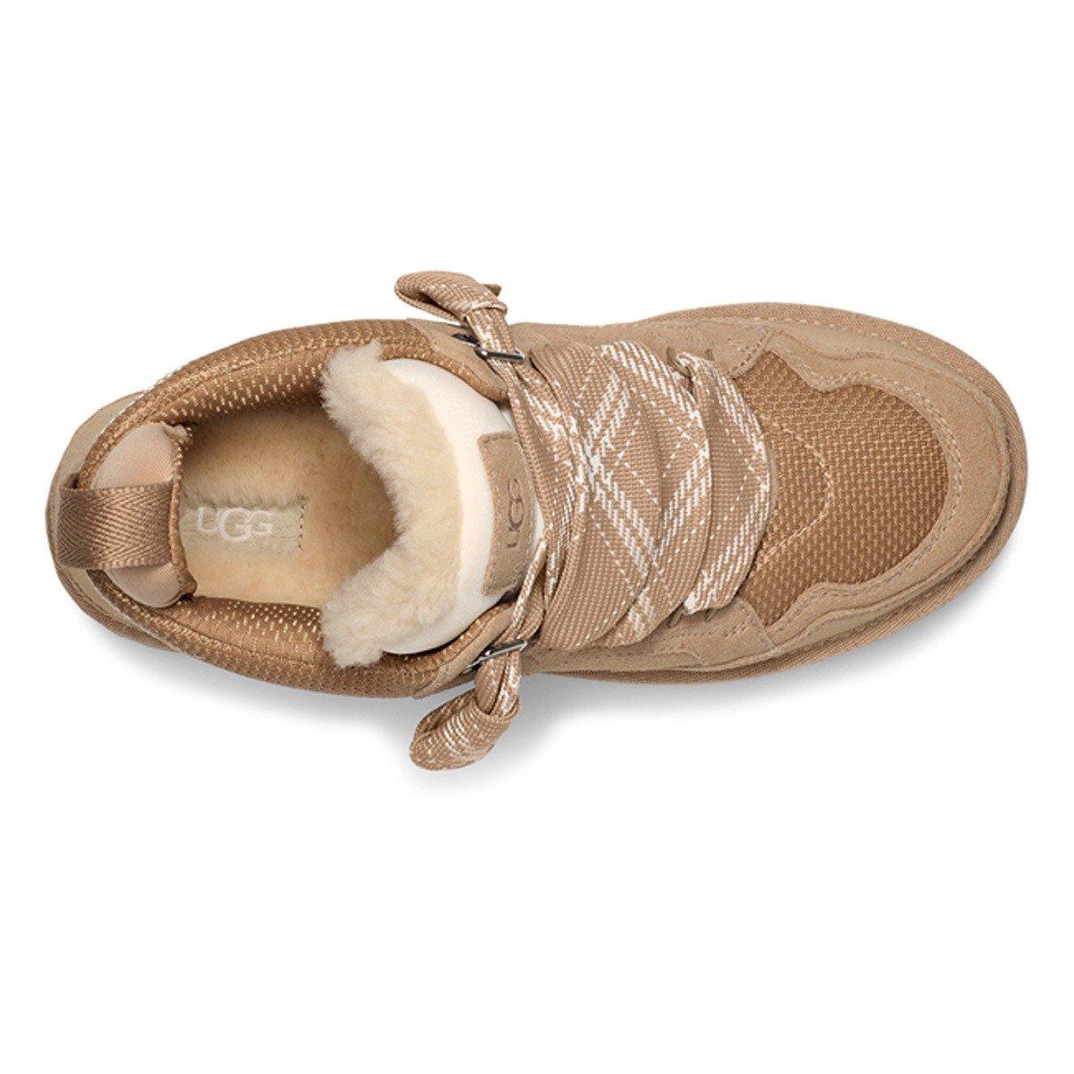 Step into style and comfort with the Women's UGG Lowmel Sneaker Boots. These versatile boots feature a durable upper made from recycled ballistic canvas mesh and suede, while the oversized padded tongue and collar provide all-day cushioning. A webbing heel strap with a UGG® logo patch adds a modern, sporty touch. Finished with a lightweight sugarcane EVA outsole, the Women's UGG Lowmel Sneaker Boots are perfect for everyday adventures with a sustainable edge.