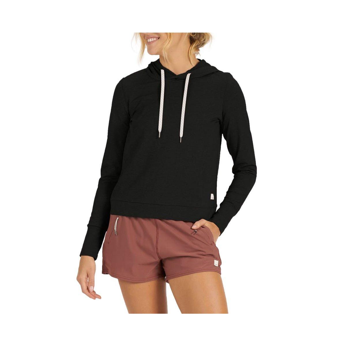The Women's Vuori Halo Essential Hoodie will be the softest hoodie in your layering wardrobe. With a drawcord hood and relaxed fit, you can find the most comfortable fit every time. The Vuori Halo Essential Hoodie is made with Vuori's signature DreamKnit ™ fabric that wicks sweat, dries quickly, and blocks some of the sun's harmful rays. Stay cool and comfortable in the ultra-soft and lightweight Women's Vuori Halo Essential Hoodie.