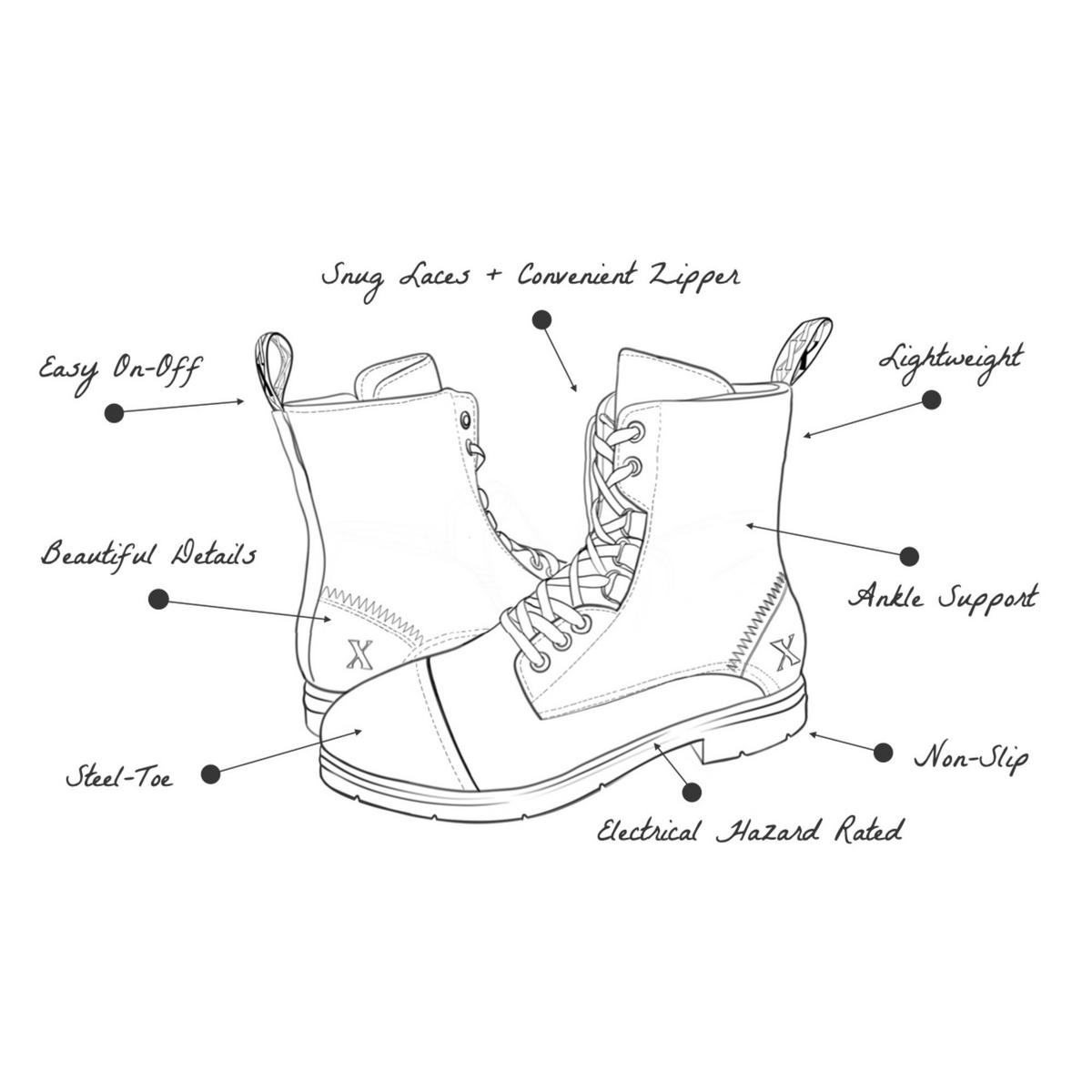 Meet the perfect women's Safety + Combat + Work Boot. Yes, this EH Rated steel-toe IS that versatile. It offers great stability, grip, and strong ankle support with an angled zipper that makes it super easy to put on & take off (perfect for high-insteps). Spice is handcrafted in North America using LWG Gold Certified leather.