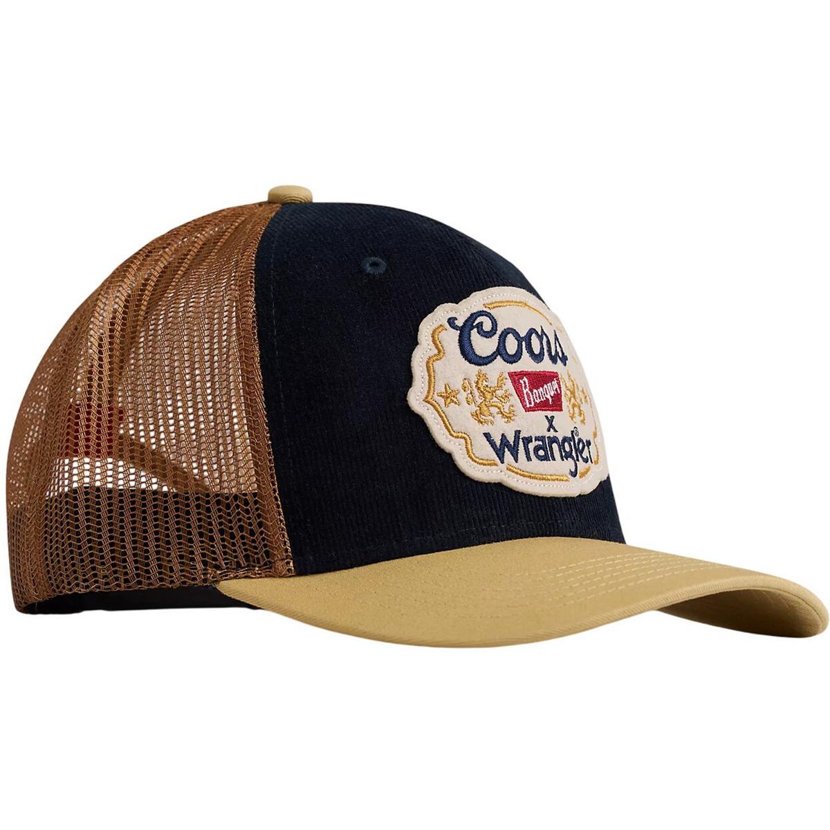 Keep that Western spirit alive and the sun out of your eyes with this Wrangler® x Coors® Heritage Emblem Cap. It features a mid-profile, structured fit and a six-panel design with a corduroy front, a mesh back, a moisture-wicking sweatband, and stitched eyelets to keep your head cool. This hat comes with a semi-curved bill and an adjustable snapback closure for the perfect fit. Plus, it’s finished with a felt applique featuring co-branded embroidery to make sure you’re always in good company.
