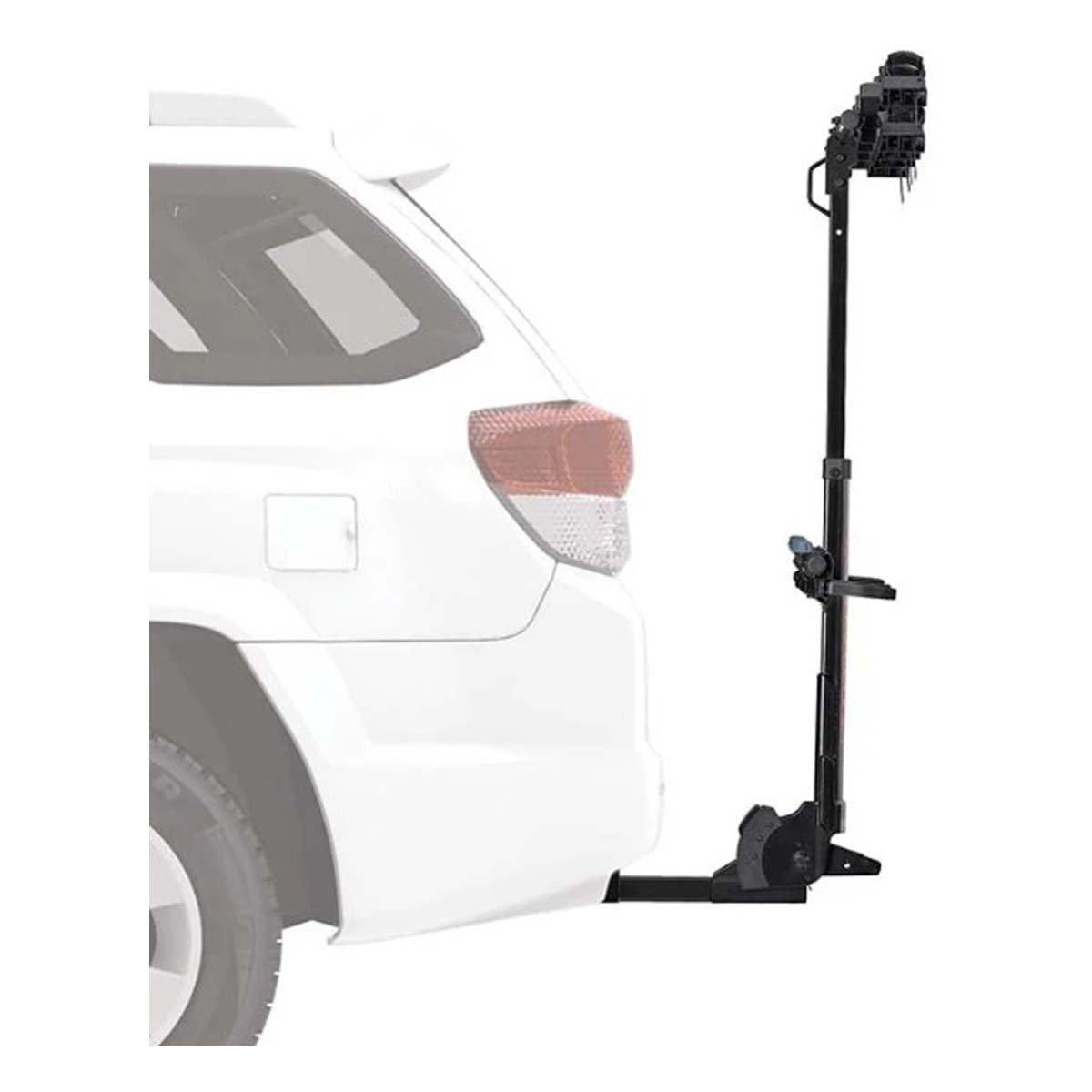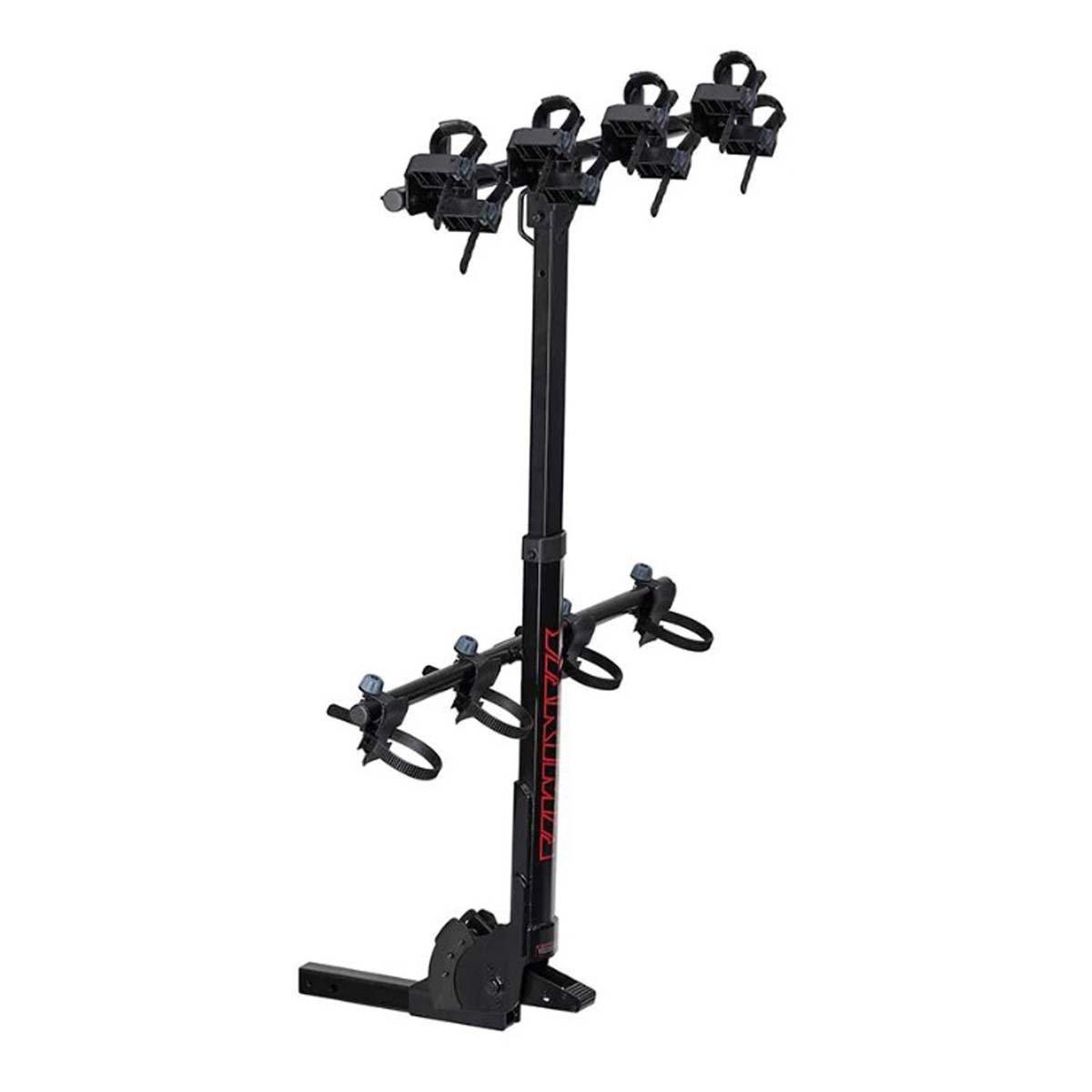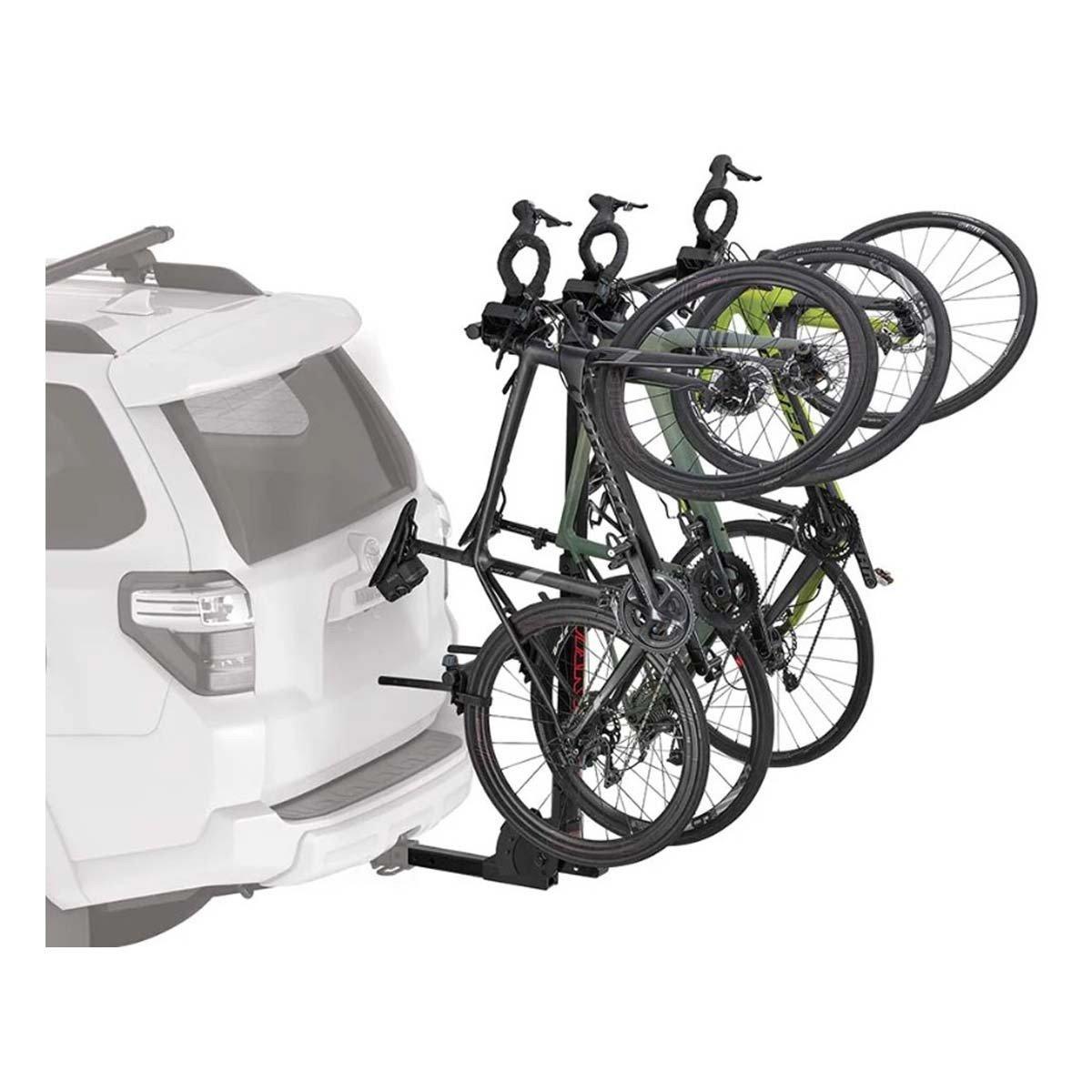 The Yakima HangTight 4 Vertical Hanging Hitch Bike Rack is designed for versatility and durability when transporting multiple bikes. With the Yakima HangTight 4, you'll need a two-inch receiver hitch in order to hang up to four bikes vertically on the back of your vehicle. Featuring the foot-operated tilt mechanism, the Yakima HangTight 4 will move away from the rear of your vehicle for easy access to the back storage without needing to remove the bike rack. To secure your bikes, this bike hitch rack features two cradles to secure each bike and prevent them from rubbing against each other during transport.