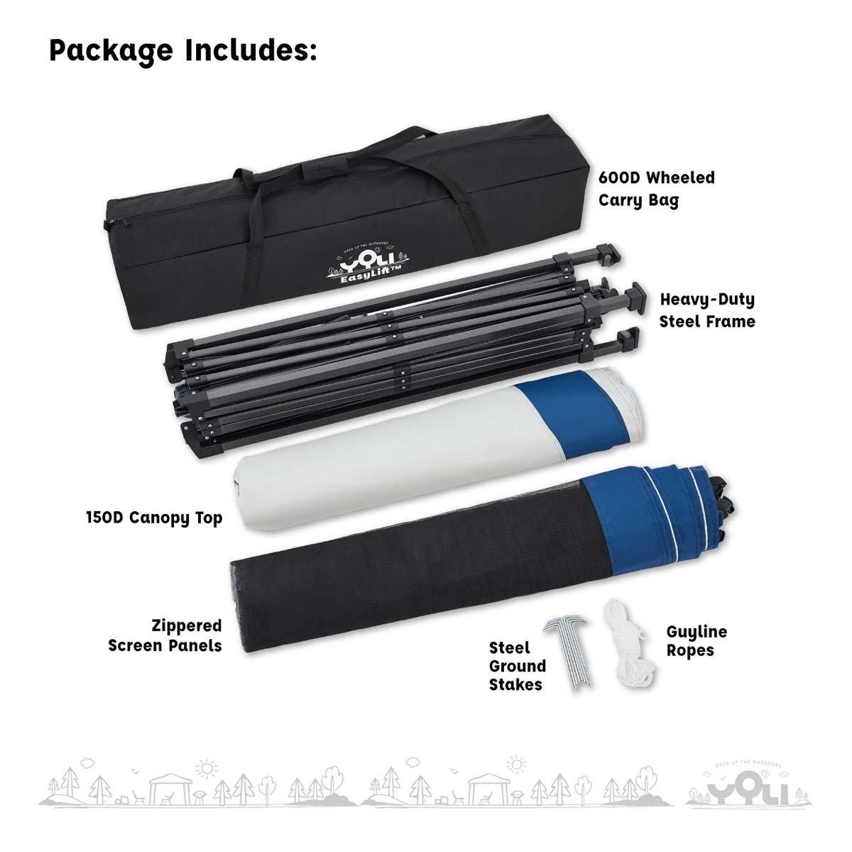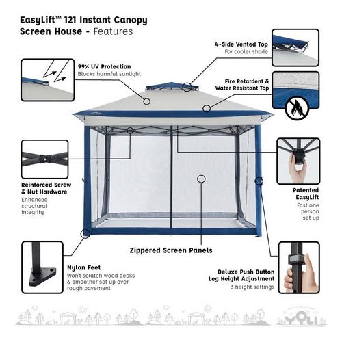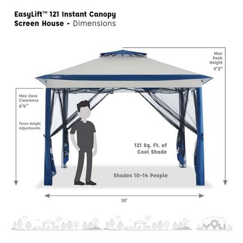 harmful UV rays. YOLI Screen House EasyLift 121 11’ x 11’ Instant Canopy includes 1-piece fully