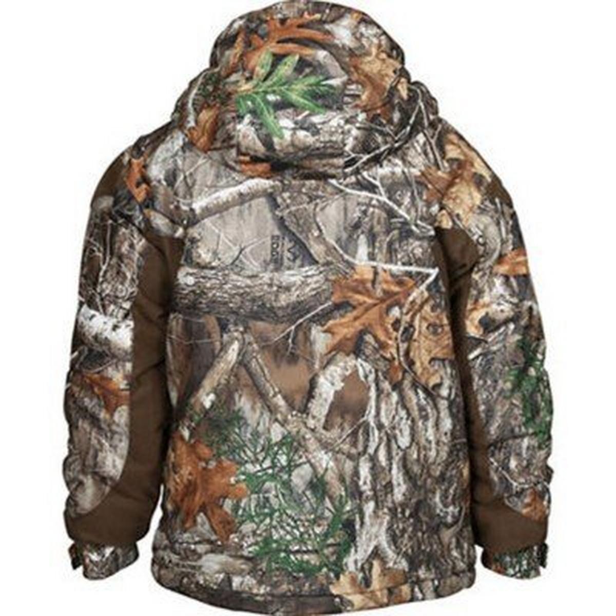 A drawcord waist and adjustable cuffs let your child further customize his youth camo coat to his style and size. Inside are security pockets and two slash pockets so he has plenty of places to stash necessities.