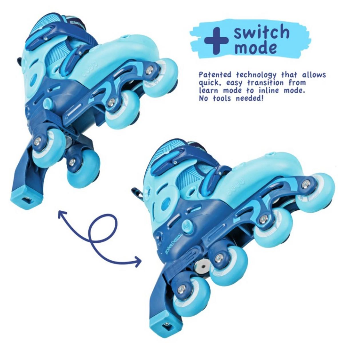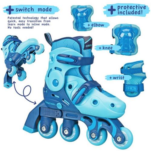 Get ready for the perfect blend of fun and learning with the Switch Skates by Roller Derby! Designed for growing kids, the Switch offers a unique 2-in-1 experience, transforming from a training mode to inline skates as your child’s confidence builds. Parents love the easy, tool-free switch between modes, and kids love the adjustable sizing that grows with them! With a durable hard-shell boot for stability and a padded comfort liner, your child can skate in comfort both indoors and outdoors. Plus, the matching protective gear, including knee pads, elbow pads, and wrist guards, keeps your little one safe while they learn and play!