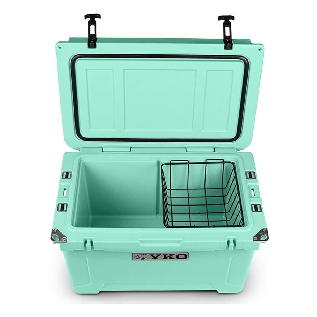 Featured with industrial-grade cryo-foam insulation, you can trust that the Yukon Outfitters 45QT Cooler will have plenty of space to keep your items cold. Whether you need a new cooler for a day on the lake or camping, the Yukon Outfitters 45QT Hard Cooler is an excellent option. As an added bonus, you have a basket so you can keep your dry goods away from the ice/water. Plus, this is a great option to use for a fishing cooler because it has a measuring ruler on the lid!