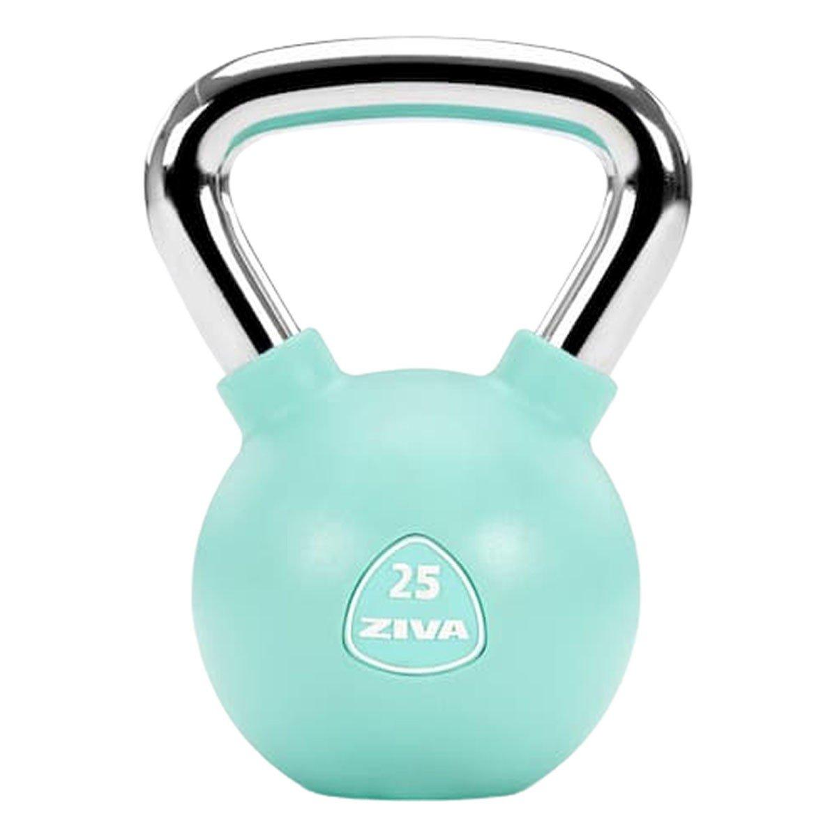 The kettlebell is a beautifully simple, full-body strength-building and conditioning tool. The ZIVA Chic RPU Kettlebell takes this already perfect tool and enhances it with advanced wear-, rust-, and corrosion-resistant RPU coating that falls more softly than its conventional unadorned counterparts, making it ideal for the home gym. Its ultra-durable chrome grip is less prone to dings and scratches than cast iron or plastic and is designed without knurling to challenge and strengthen your grip. Iconic, bold styling makes our kettlebell gym centerpieces worthy of display. The weight numbers are vibrantly marked for easy identification in vibrant ZIVA White that matches perfectly with the surrounding Tiffany blue and chrome. Starting at 10lb and going all the way up to 50lb, the RPU Kettlebell is an ideal tool for high-performance, high-intensity training.