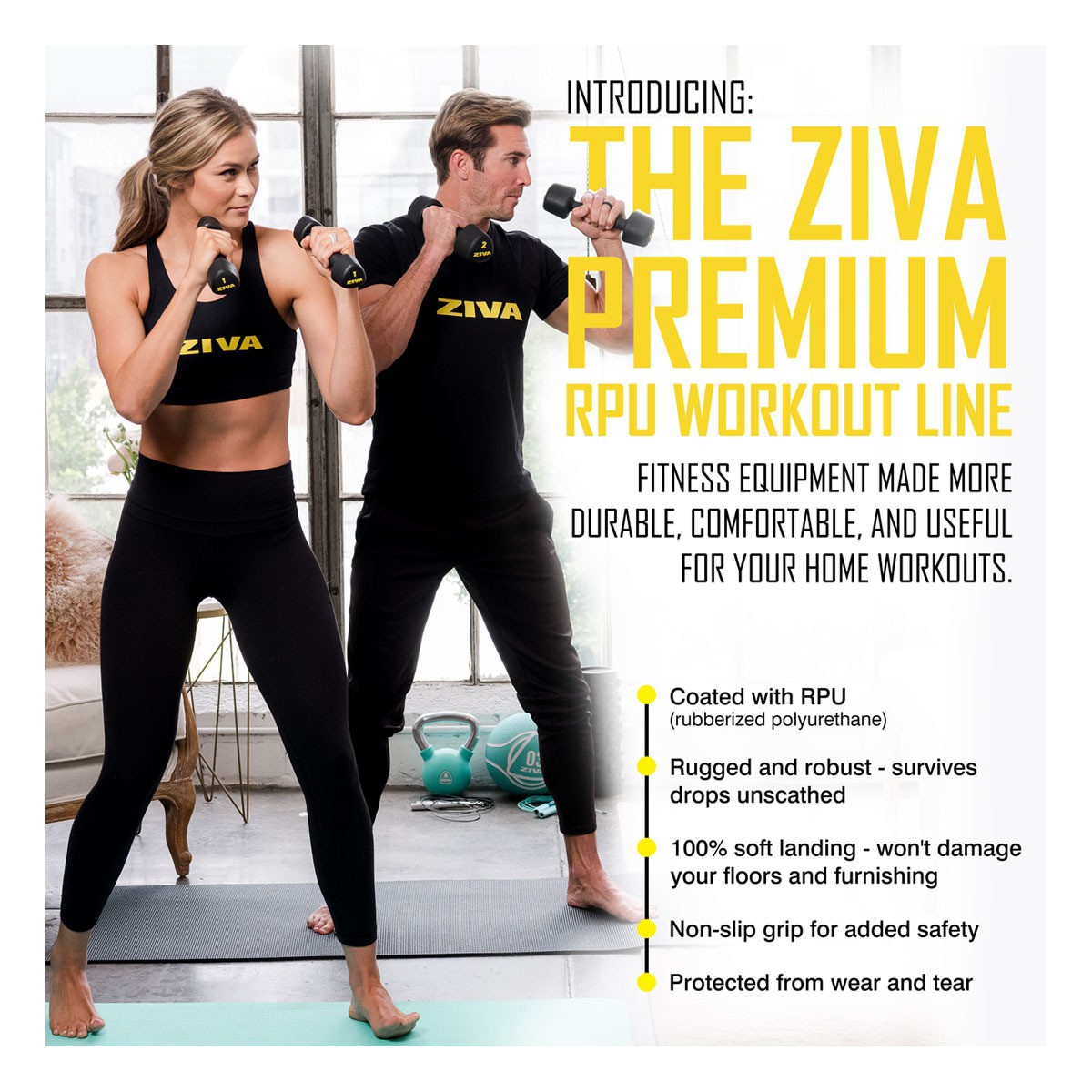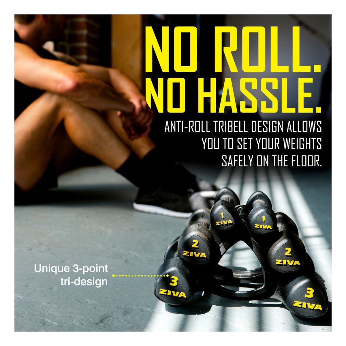 ZIVA’s innovative, iconic tribell design keeps your bells exactly where you put them so they’re where you need them when you need them. Compact and stable, ZIVA RPU Tribells are coated in long-lasting, non-slip RPU and can be set down with confidence even on rounded or uneven surfaces thanks to their no-roll design. These eye-catching, studio-grade bells in ZIVA Black & Yellow look as at home in the living room or office as they do in the gym.