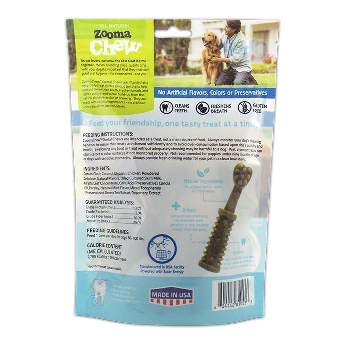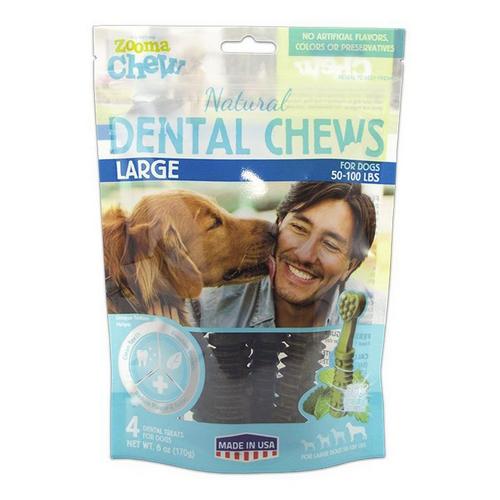 Dental Chews are intended as a once-daily treat with a unique texture to help your pet clean their teeth, freshen breath, and reduce plaque build-up from the natural abrasive action of chewing. They are made with natural ingredients - no artificial colors, flavors, or preservatives.