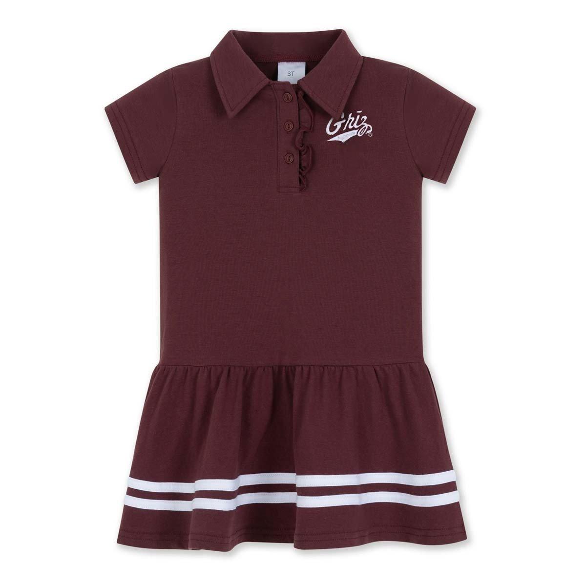 {"reviews":[],"offset":0,"limit":10,"total":0}"Full Description:\nWhether you’re watching the game at the stadium or with friends, stand out from the crowd with the ZooZatZ Toddler Montana Grizzlies Collar Dress. This Montana Grizzlies dress features bold colors and team graphics so everyone knows which College team you’re cheering onto victory. Add this flattering Montana Grizzlies dress to your clothing selection for a stand-out game-day look.<br />\n<br />\n<br />\n\n"