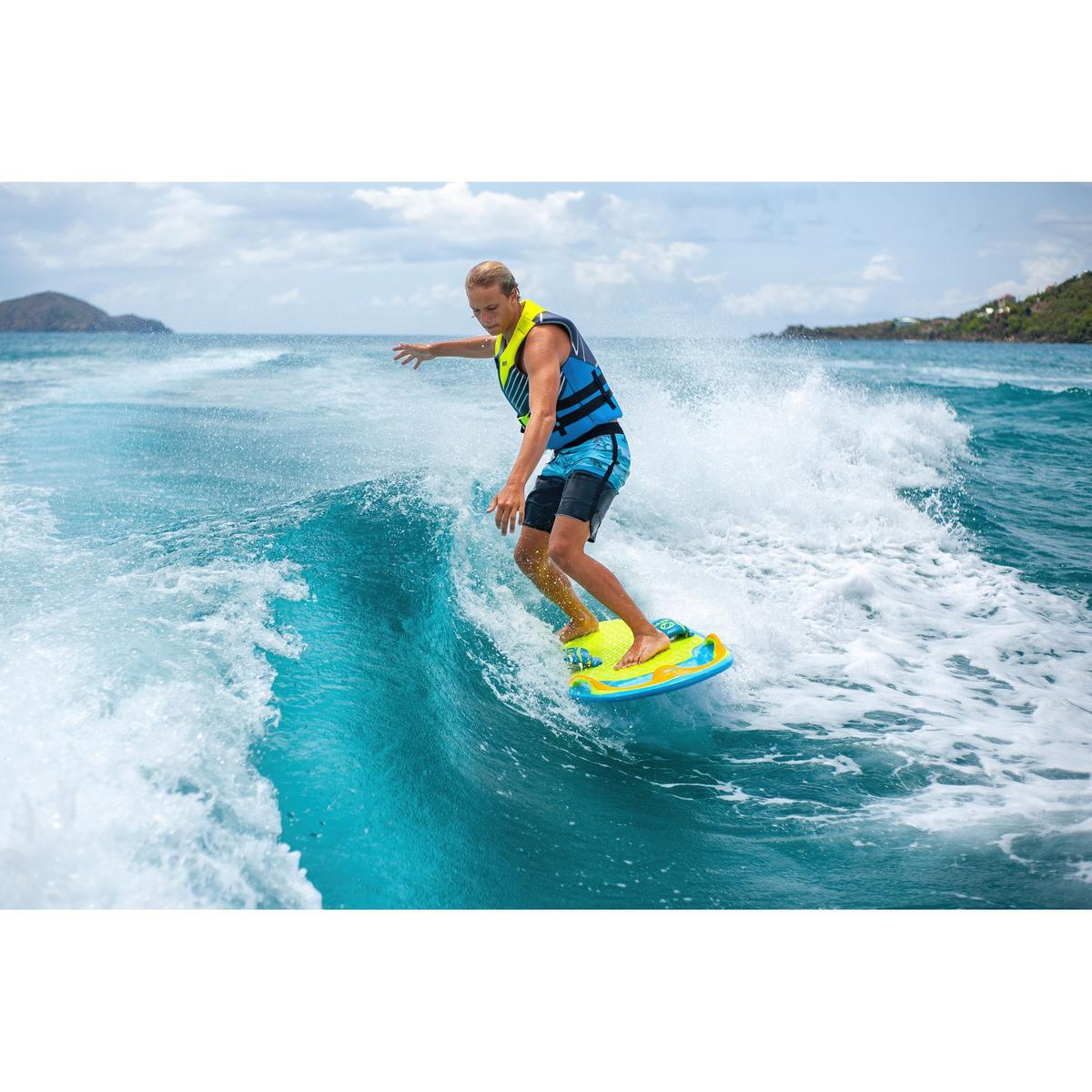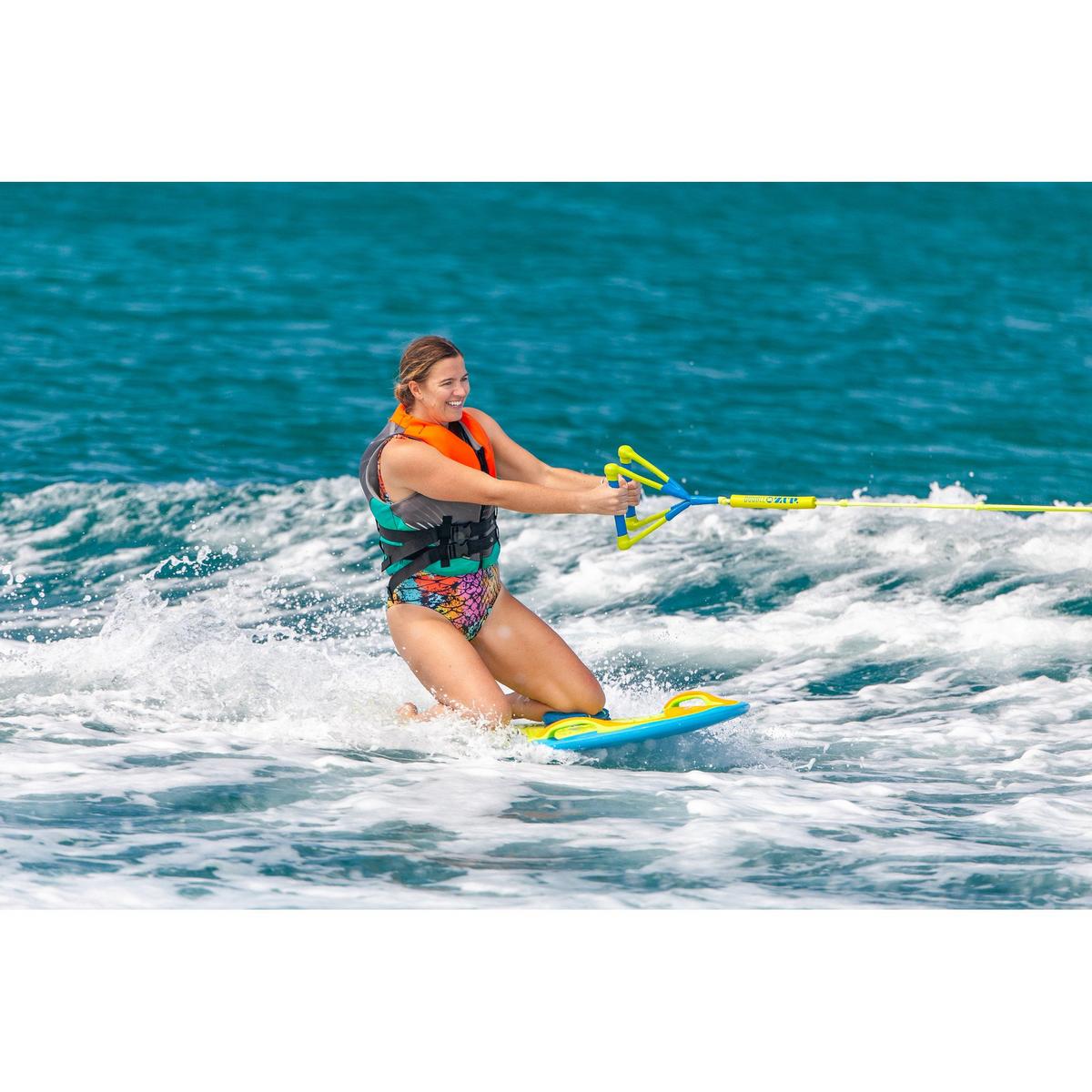 The ZUP You Got This 2.0 Wakeboard is a versatile water sports board that is ideal for beginner to intermediate riders. This ZUP wakeboard features a comfortable non-skid EVA foam deck so riders can choose to lay, kneel, stand, surf, ride backwards, or even spin 360-degrees. The molded side handles and slip-in multifunctional foot straps offer added security options for riders. With durable ABS construction, your water sports board will stay in working condition for several seasons of use. The whole family will enjoy the ZUP You Got This 2.0 Wakeboard this summer.