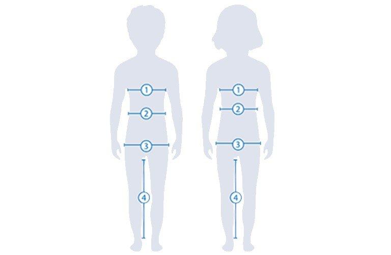 | Size | Chest (in.) | Waist (in.) | Age (yrs) |