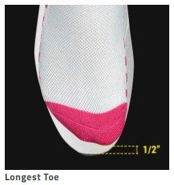 Leave about ½” of space between your longest toe and the end of your shoe.
