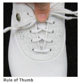 The opening at the top of your shoes should be about a thumbs width apart. Other factors, like arch height can affect this, but it is a good place to start.