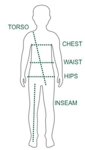 | Size | Height (in.) | Chest (in.) | Waist (in.) | Hips (in.) |