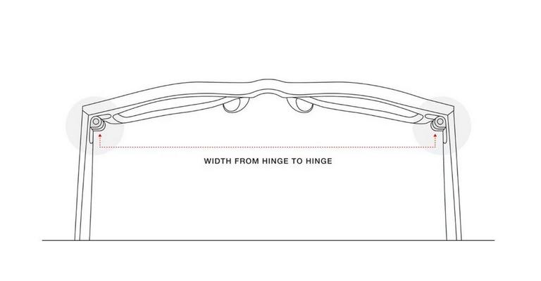 To find your correct frame size, use a ruler to measure the **hinge-to-hinge** distance of a pair of glasses