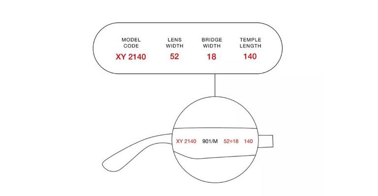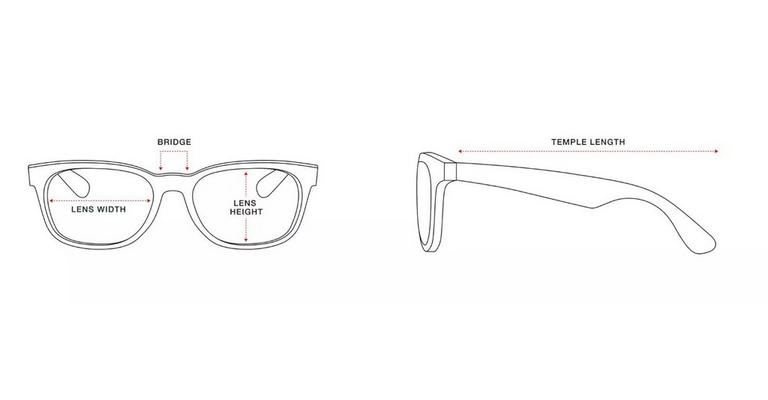 The first one is the **Model name**, then the **Lens width** and **Bridge** **width**. There is usally a third number which represents the **Temple Length**, which is the measurement in millimeters of the 'arms' of the frame. Sometimes there is also a fourth number which is the **Lens Height**.