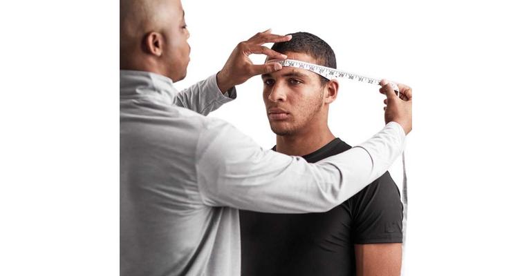 Measure with tape approximately 1" above the player's eyebrows
