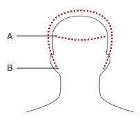 Measure circumference of the head starting at the center of the forehead.
