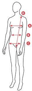 | Size | Chest (in.) | Waist (in.) | Hips (in.) | Torso (in.) |