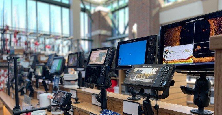 A variety of fishing electronics on display at SCHEELS.