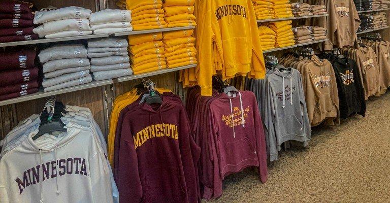 a selection of Minnesota Gophers clothing on display at Eden Prairie SCHEELS