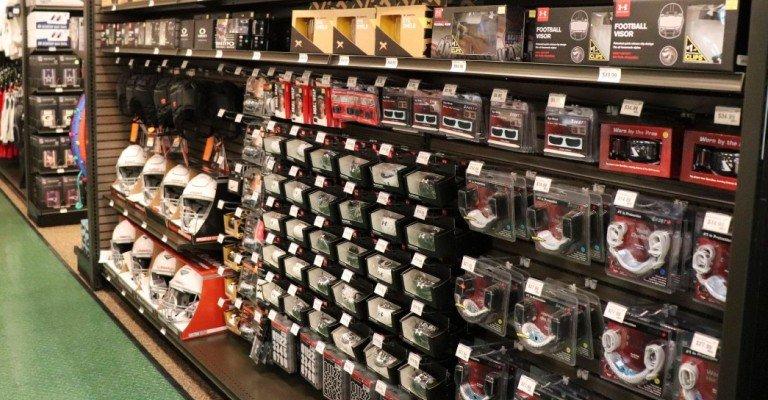 a variety of football accessories on display at SCHEELS